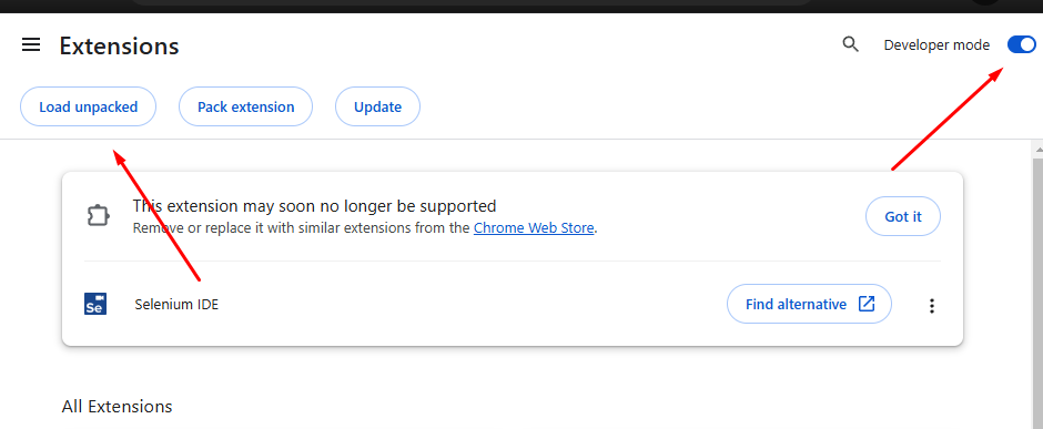 + Mở chrome vào đường dẫn quản lý extension: “chrome://extensions/”, mở chế độ “Developer mode” => chọn “Load unpacked”.